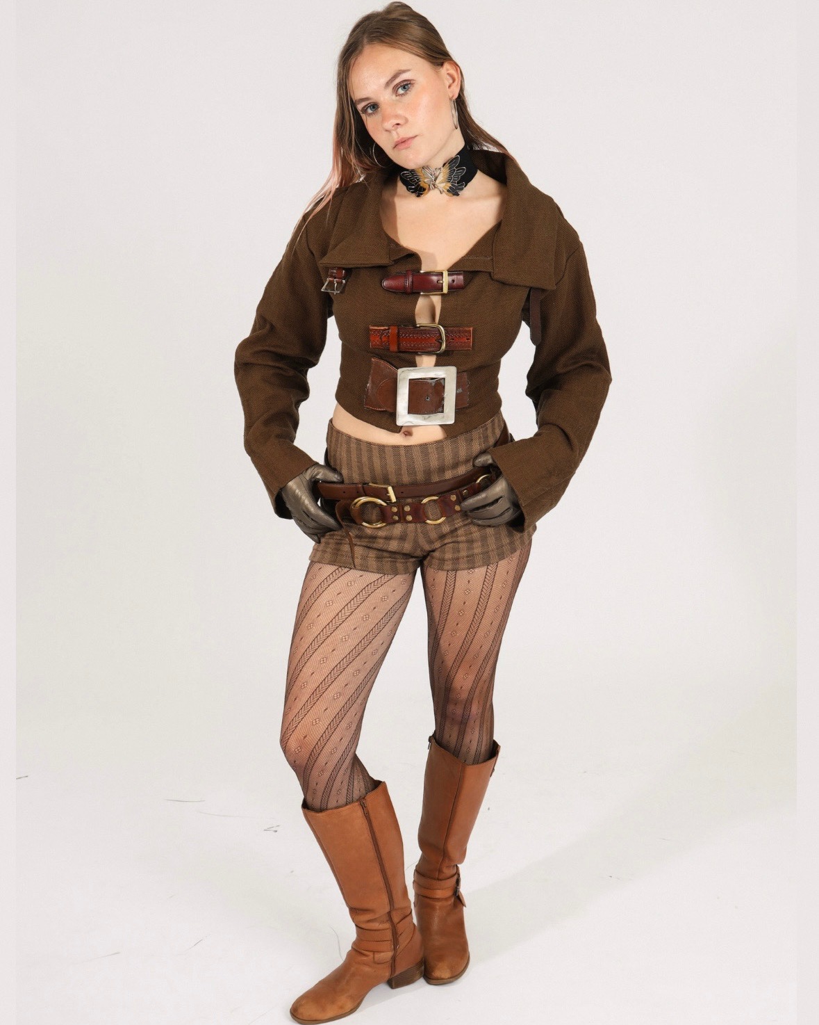 Handmade jacket with belt closures