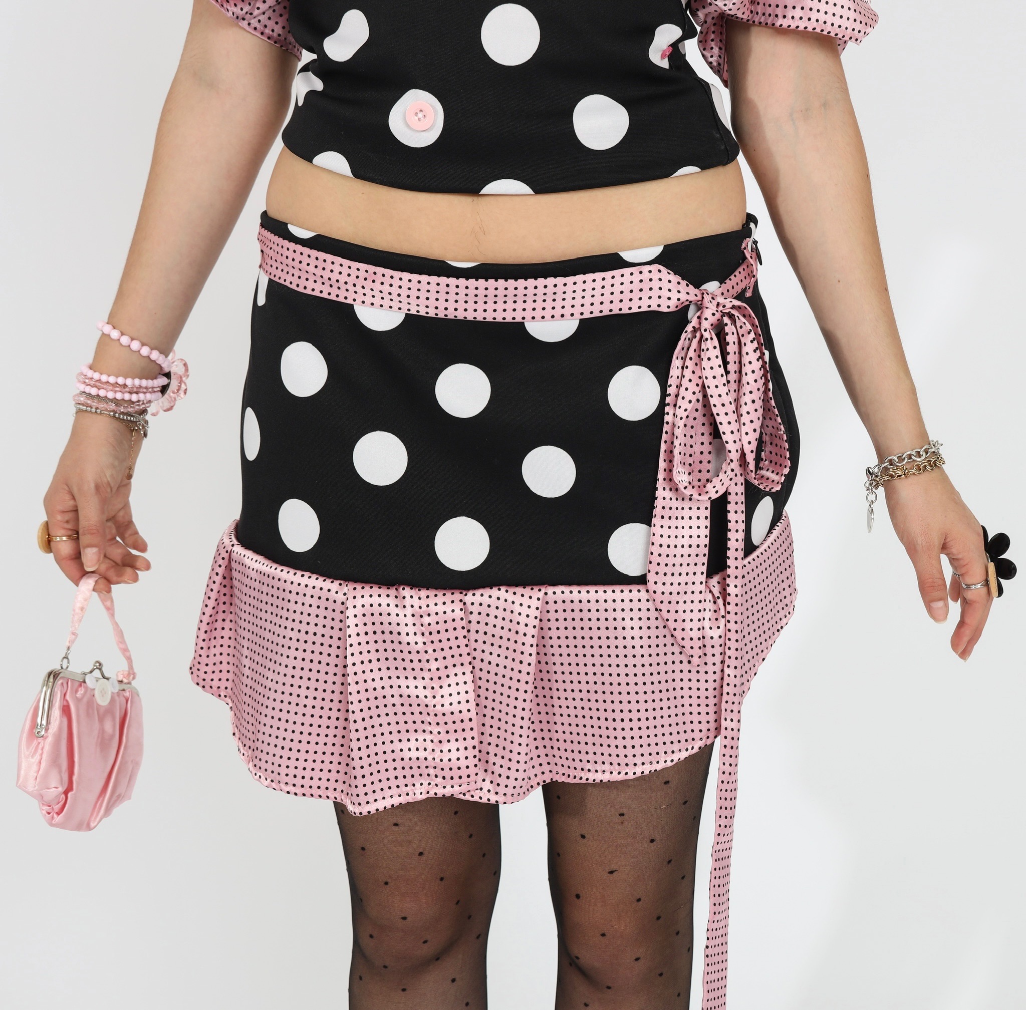 Top and skirt set handmade from secondhand materials