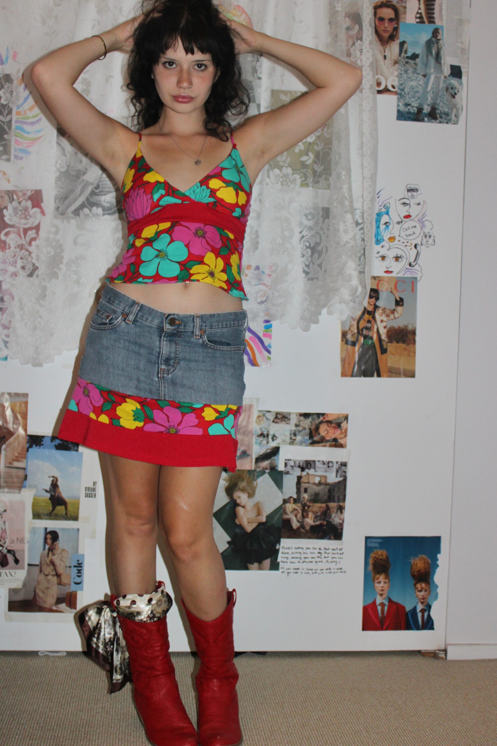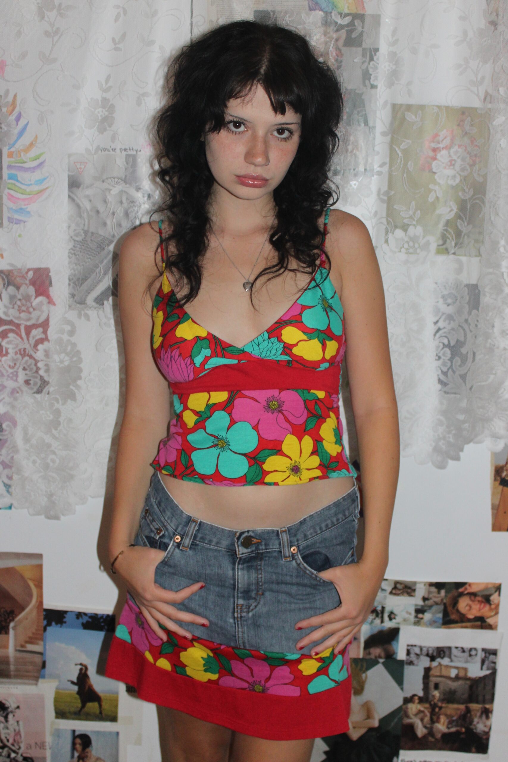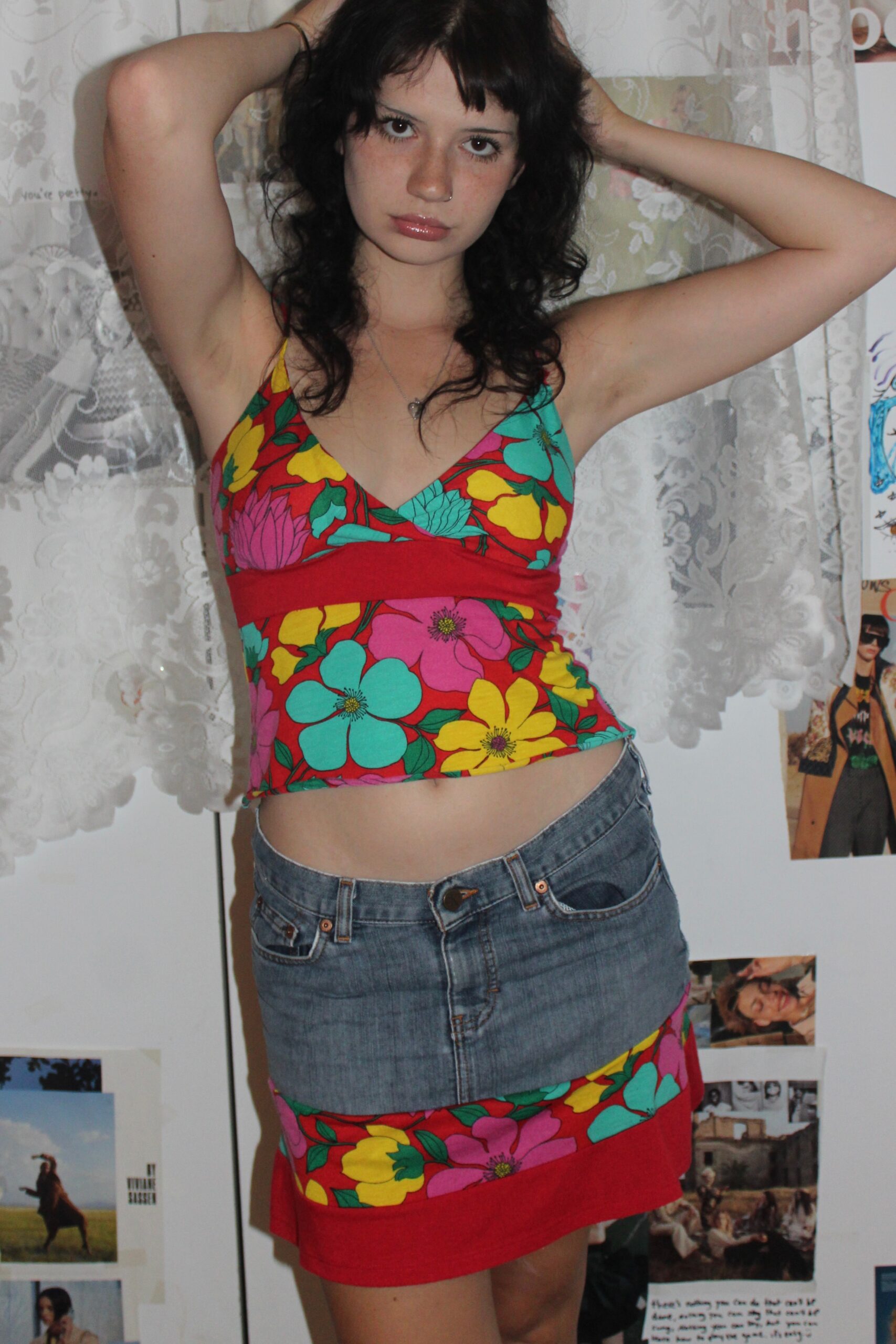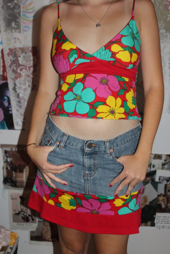 Handmade tank and denim skirt set